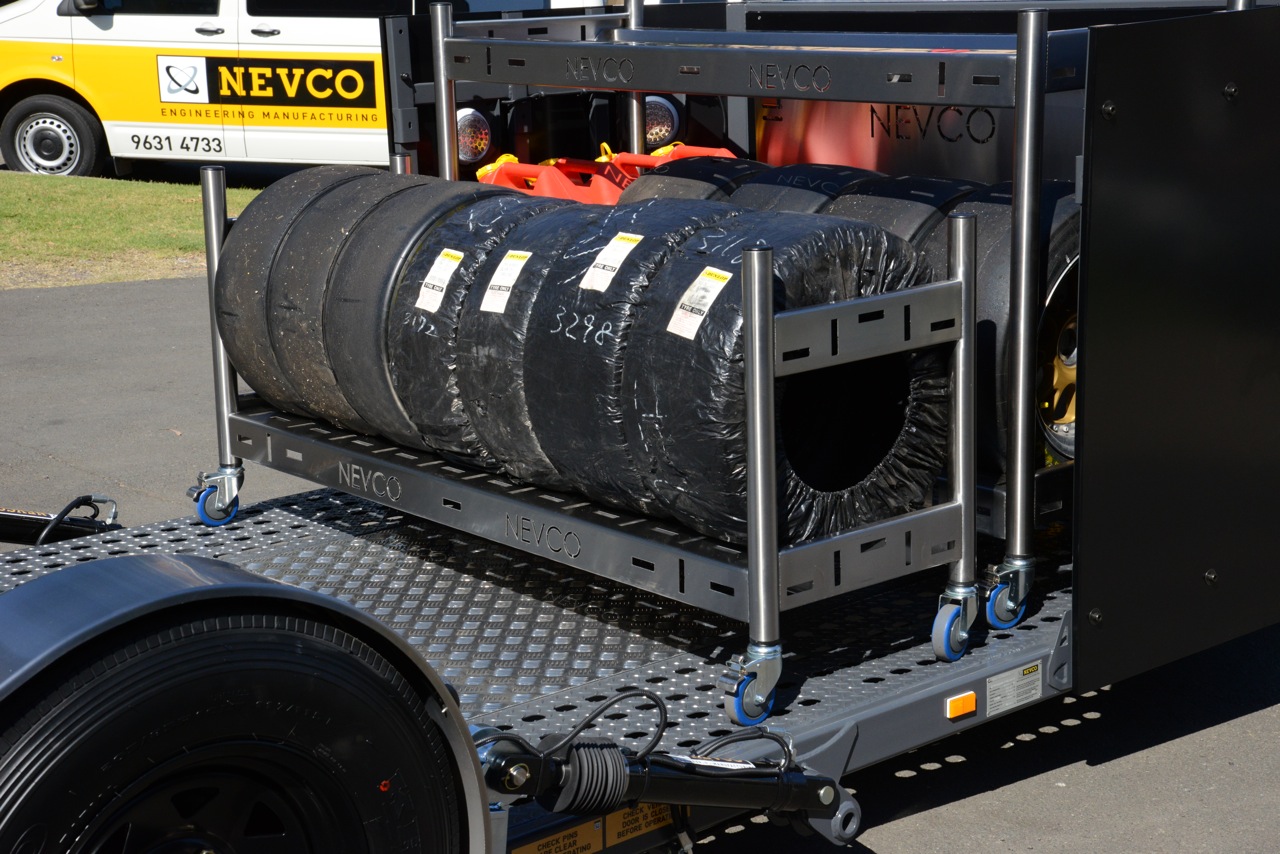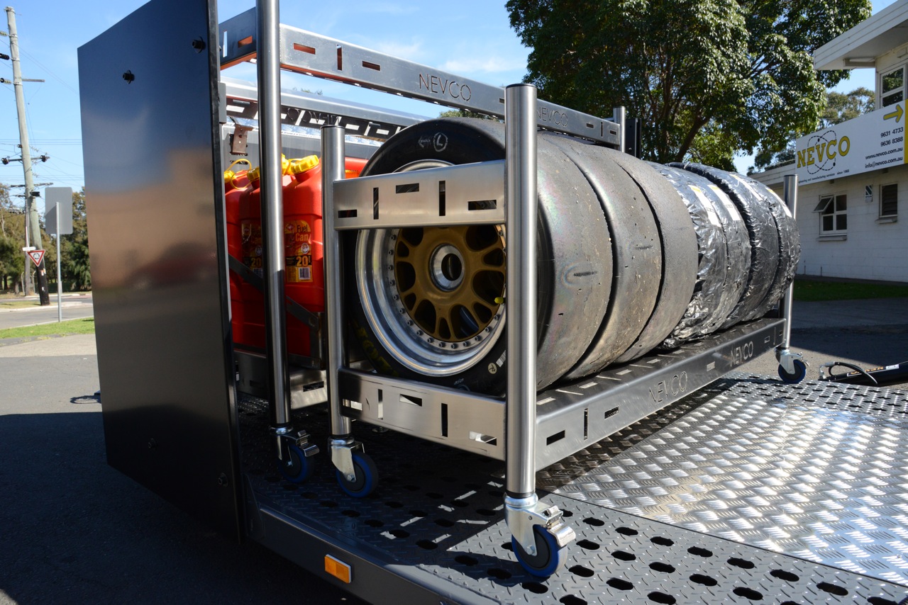 Check out these new designs. EZY Roll ON and OFF. Nevco Integrated Tie-Down System (NITS) fastens trolleys securely in place for travel.