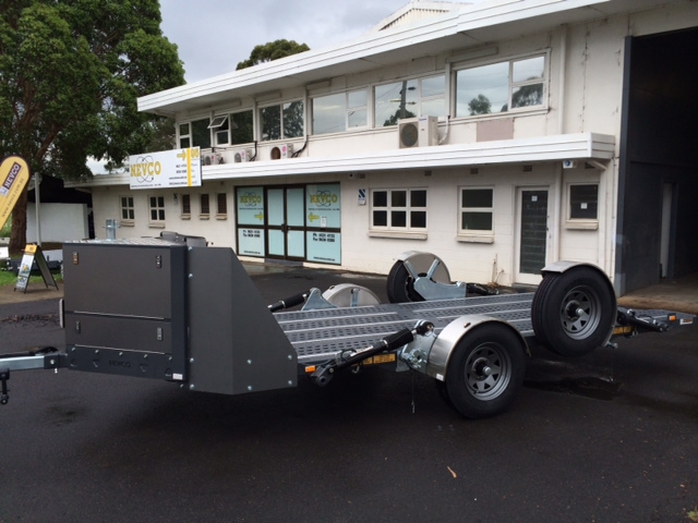 The Nevco Ezy Approach Trailer has been cleverly designed so that options and appropriate features may be added as required. It is possible to add options such as a storage unit, stone guard, ramp pockets and motor sport related tyre rack and roll on/off pit trolleys. These items are modular and bolt-on to the structural flanges located around the front of the trailer deck.